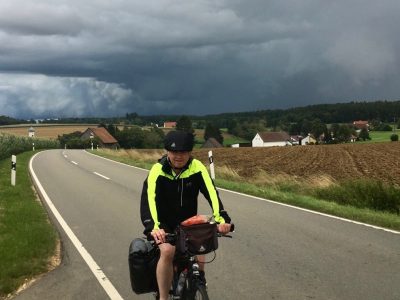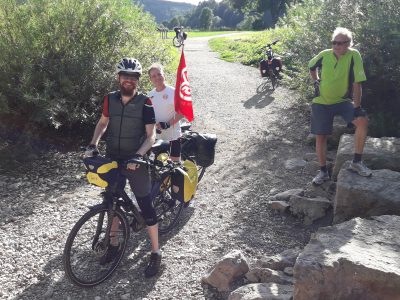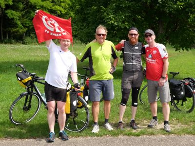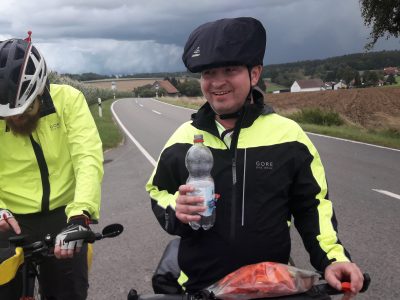 Zur gleichen Zeit kämpft sich ein fünfter Mainz-Südler ans Peloton heran. Unsere Wetterfee Achim musste noch die Nachtschicht auf den Donnerstag arbeiten: Kein Grund für ihn nicht mitzufahren. Nach durchwachter Nacht geht es in aller Früh aufs Rad, mit dem Ziel die 100km Vorsprung der vier anderen zuzufahren.