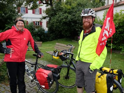 Als der Memmingen Regen nachlässt, ist das Mittagessen verdaut und es geht weiter über Rot an der Rot und Bad Schussenried bis nach Herbertingen, wo wir im Gedenken an unser nach Mainz zurückgekehrtes Mainz-Süd Mitglied Herbert übernachten. Insgesamt ist die Donnerstagsetappe ca 130km lang. Der zeitweise Regen, der Gegenwind und die Hügellandschaft erschweren das Vorankommen, aber alle sind froh und glücklich über die zurückgelegte Strecke.